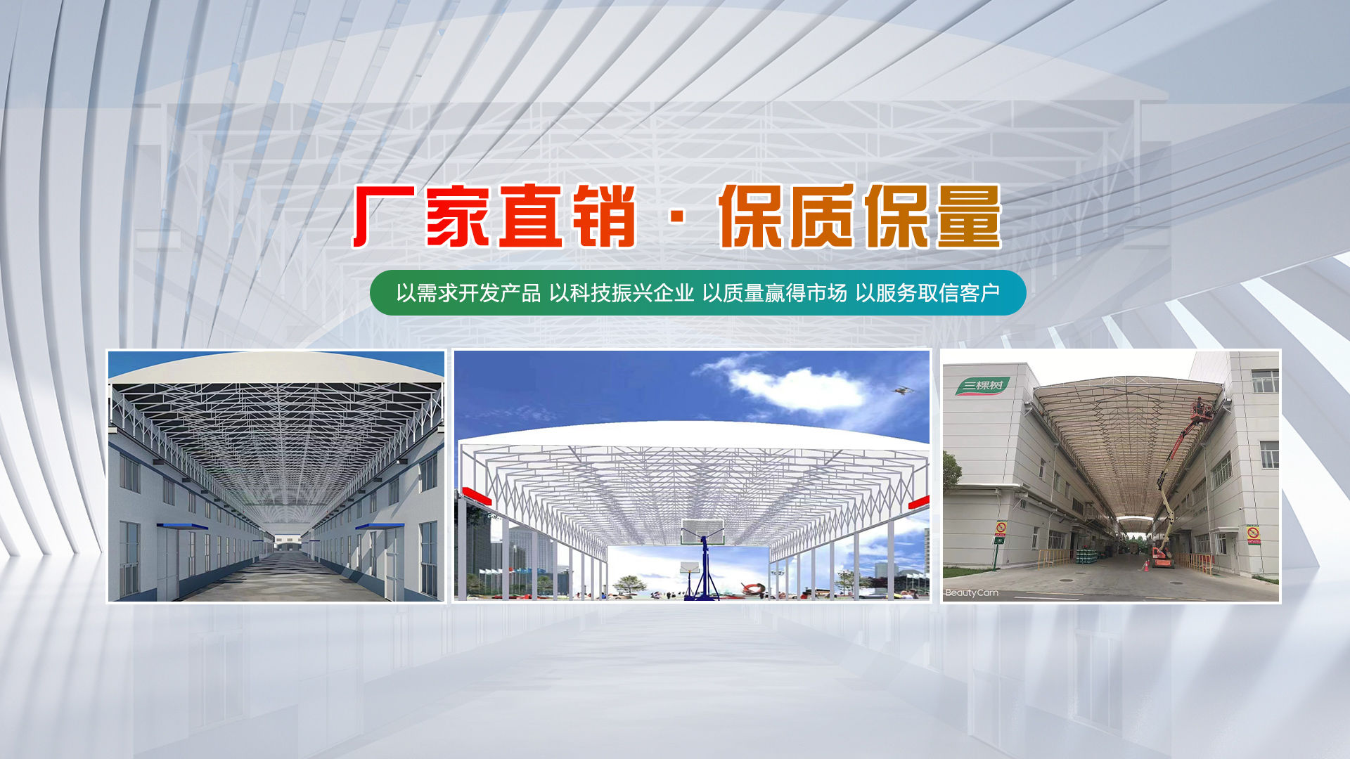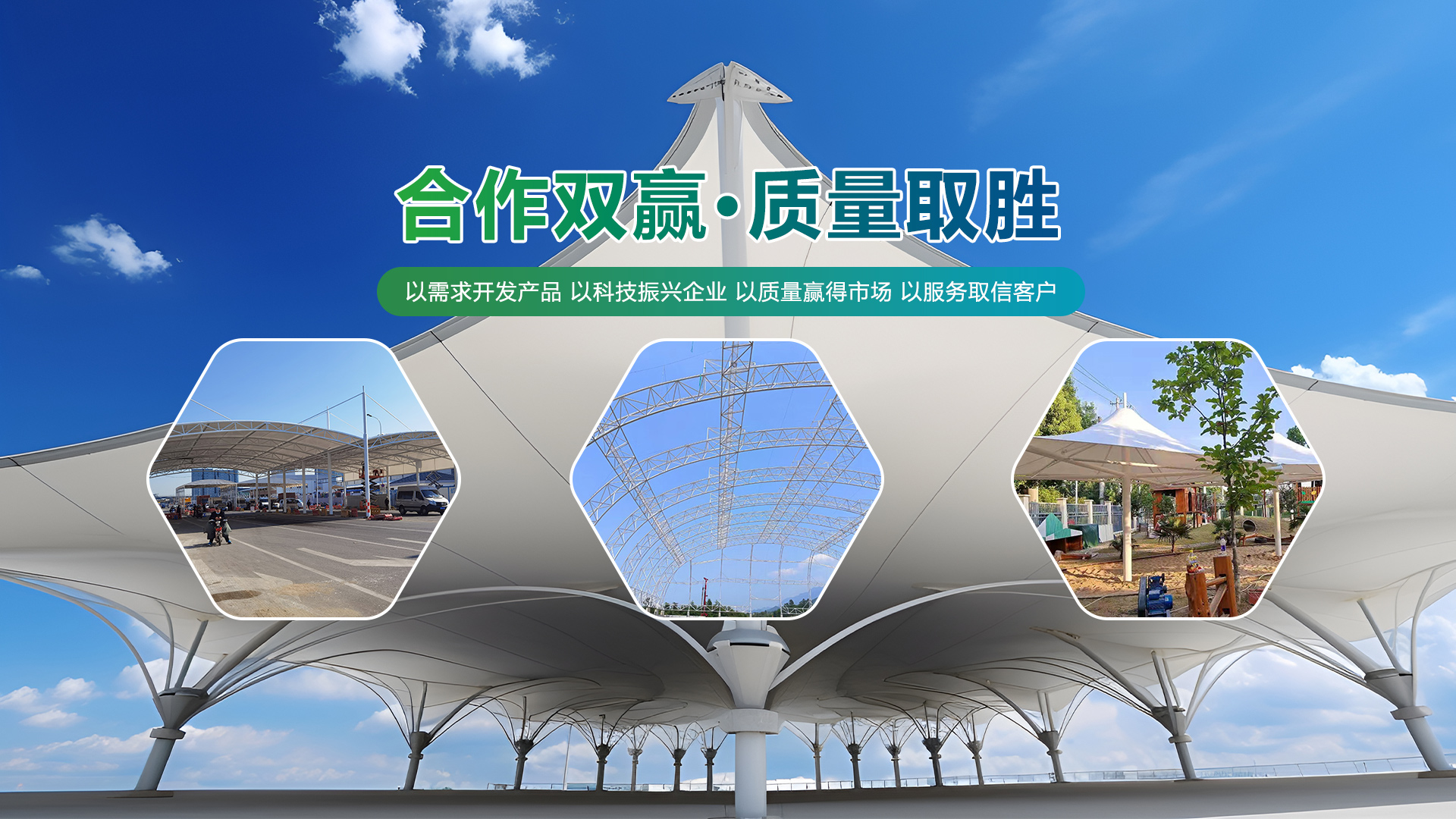 江蘇鵬達(dá)膜結(jié)構(gòu)工程有限公司從事鋼膜結(jié)構(gòu)設(shè)計(jì)、制作、安裝、生產(chǎn)、銷(xiāo)售。本公司擁有現(xiàn)代化標(biāo)準(zhǔn)加工車(chē)間為其它鋼結(jié)構(gòu)公司、膜結(jié)構(gòu)公司、膜結(jié)構(gòu)安裝隊(duì)提供大梁、異形鋼梁加工 ,提供膜材加工、批發(fā) ,擁有各種進(jìn)口、國(guó)產(chǎn)膜材供客戶(hù)選擇。經(jīng)營(yíng)項(xiàng)目涉及張拉膜、骨架膜結(jié)構(gòu)、景觀(guān)膜結(jié)構(gòu)、高速公路膜結(jié)構(gòu)收費(fèi)站、體育場(chǎng)看臺(tái)膜結(jié)構(gòu)、膜結(jié)構(gòu)停車(chē)棚、遮陽(yáng)膜結(jié)構(gòu)設(shè)施、充電樁、鋼結(jié)構(gòu)廠(chǎng)房,玻璃雨棚、伸縮推拉篷等方面。公司全體員工本著堅(jiān)持技術(shù)進(jìn)步的方針,對(duì)所有作業(yè)程序都進(jìn)行嚴(yán)格控制,確保為客戶(hù)提供良好的工程質(zhì)量和售后服務(wù)。并將以齊全的技術(shù)設(shè)備、良好的產(chǎn)品質(zhì)量、完善的施工隊(duì)伍、嚴(yán)謹(jǐn)?shù)墓ぷ髯黠L(fēng),極高的工作效率的為廣大客戶(hù)提供良好的精品工程。